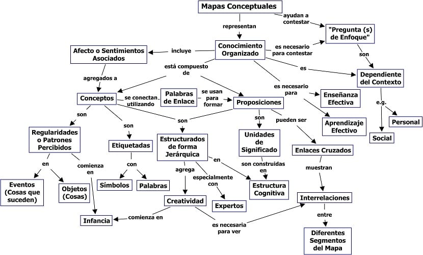 Los mapas conceptuales son ideales para representar relaciones entre conceptos de una manera muy clara. Las nociones suelen estar encerradas en círculos o cajas y las conexiones entre cada concepto se representa con conectores, generalmente en forma de línea. Estas líneas pueden estar acompañadas por pequeñas frases explicativas, pero deben ser muy breves para que el usuario pueda comprender la información sin esfuerzo y rápidamente.